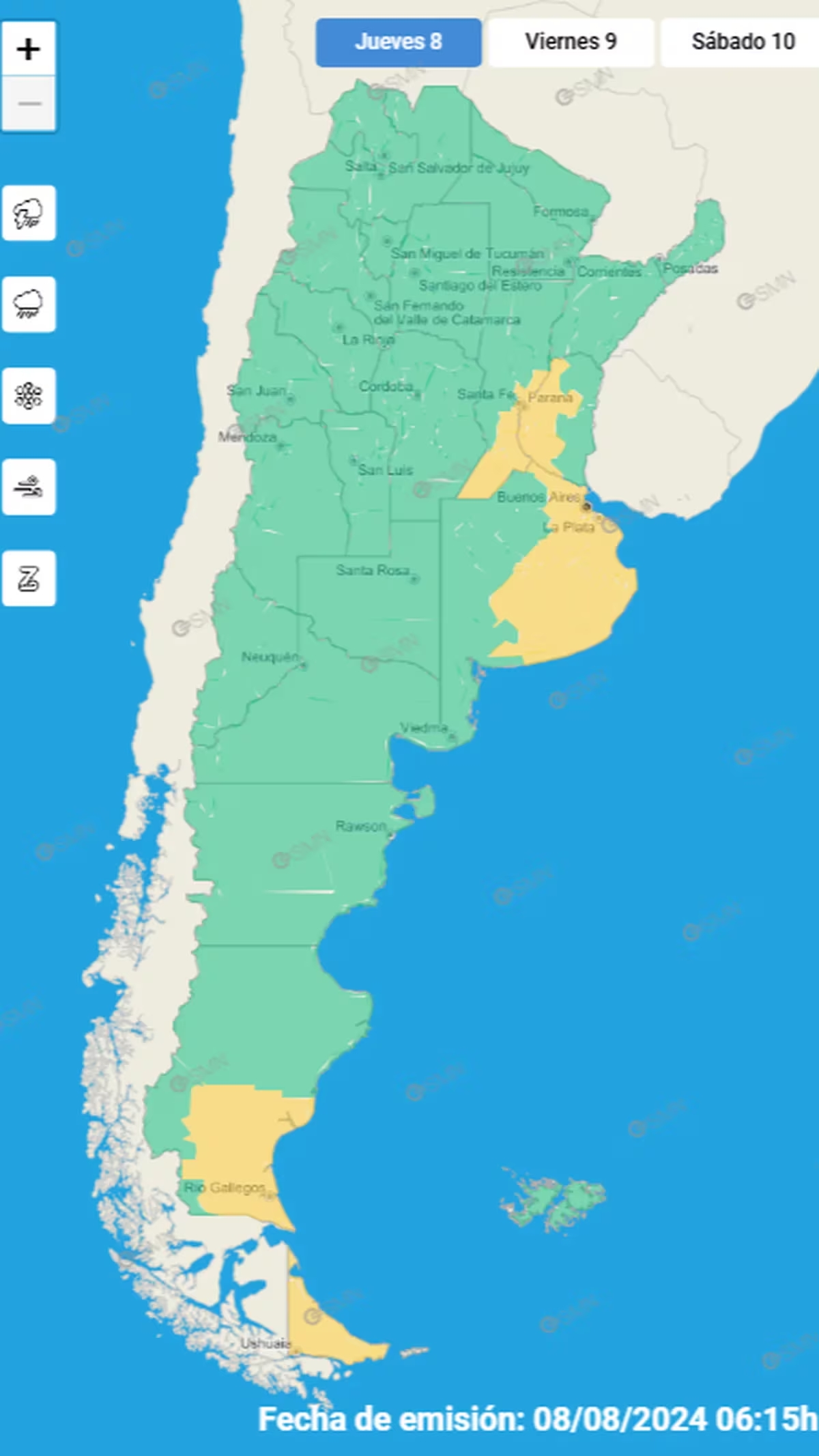 En tanto, rige una alerta por frío extremo en Jujuy, La Rioja, Córdoba, San Luis y Mendoza. Para enfrentar estos eventos climáticos adversos, el SMN recomienda: