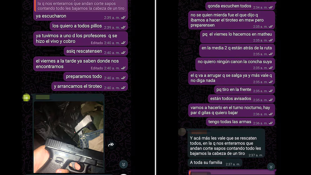 “Acá no es que ustedes elijan a quién mierda le van a disparar. Persona que ven, persona a la que le disparan, sin importar el que le toca. ¿Okey? No quiero que se arrepientan a último momento”, fue el mensaje de una de las alumnas.