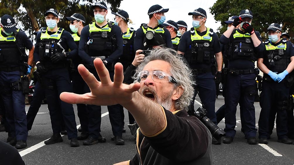 Los enfrentamientos se produjeron en Melbourne y Sidney. El país se encuentra actualmente en su peor ola de contagios de coronavirus, después de registrar su récord de casos diarios, 2.075, a comienzos de septiembre. Más de 200 manifestantes fueron arrestados y varios policías resultaron heridos este sábado en Melbourne.