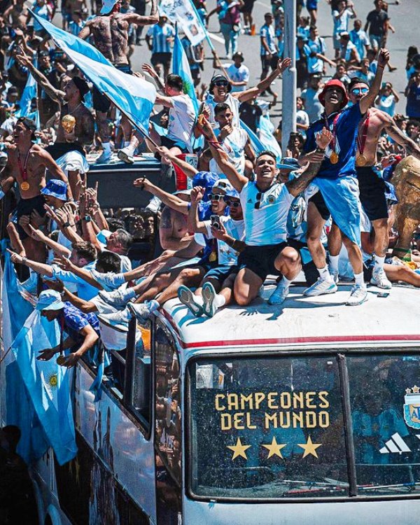 Miles de fanáticos esperan en el Obelisco y en AFA la partida de la caravana de los campeones mundiales