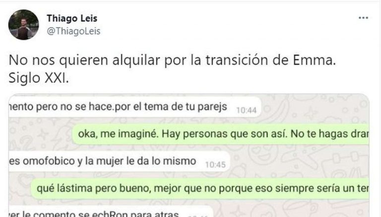 “Lo lamento, pero no se hace por el tema de tu pareja”, le negaron el alquiler de un departamento porque su pareja es trans