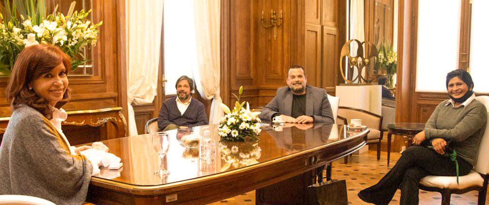 Daniel Menéndez, coordinador nacional de Barrios de Pie y Subsecretario de Políticas de Integración y Formación de la Secretaría de Economía Social del Ministerio de Desarrollo Social, junto con Norma Morales, referente del movimiento, se reunieron hoy con la vicepresidenta Cristina Fernández para discutir sobre el rol de las organizaciones sociales en el actual contexto de pandemia