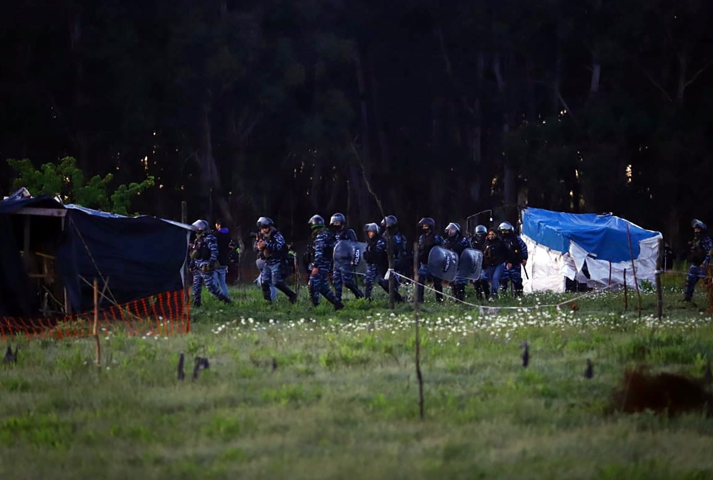 La Policía desalojó ayer, en cumplimiento de una orden judicial, el predio ocupado por familias que no habían aceptado el acuerdo para retirarse pacíficamente del lugar, en el marco de un operativo en el que fueron aprehendidas unas 35 personas.