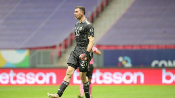 Habló Emiliano Martínez en una conferencia virtual y celebró la posibilidad de jugar esta final de Copa América en el Estadio Maracaná: «Jugar una final contra Brasil en el Maracaná es el mejor escenario y, para mí, un sueño cumplido. Todo el pueblo argentino nos quiere ver triunfar en este país».