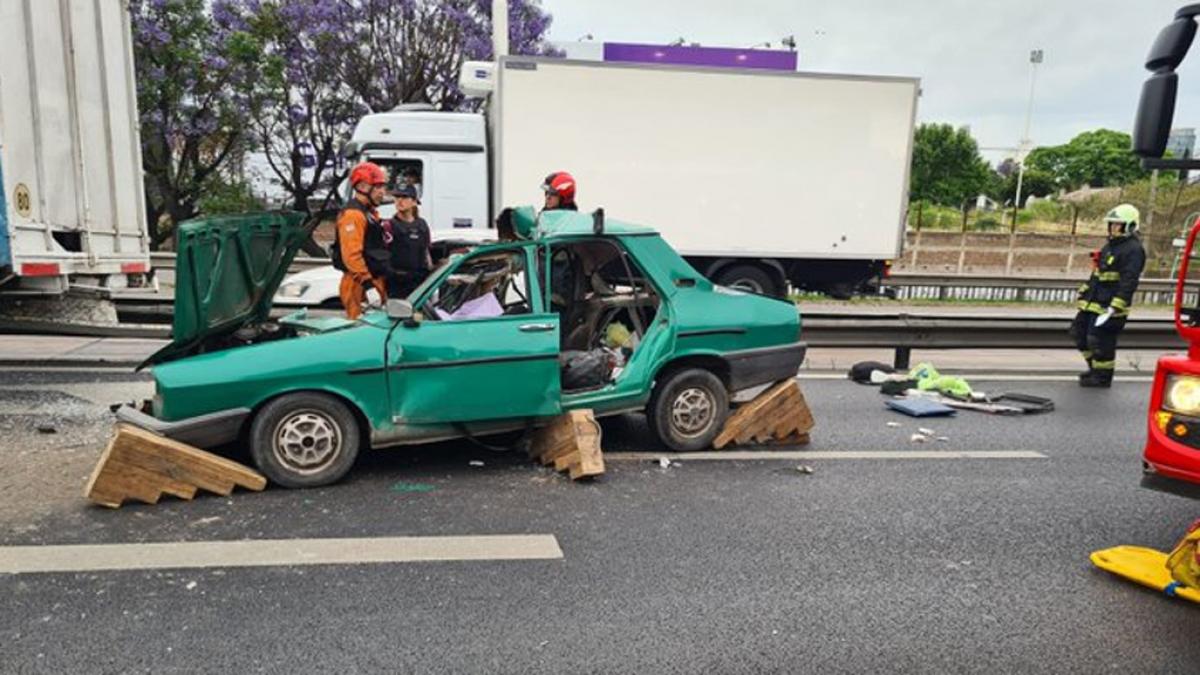 El siniestro ocurrió pasadas las 7 en avenida General Paz, de la mano que va hacia el Riachuelo, metros antes de la bajada de las avenidas Maipú y Cabildo, donde un Renault 12 de color verde impactó en la parte trasera de un camión de carga.