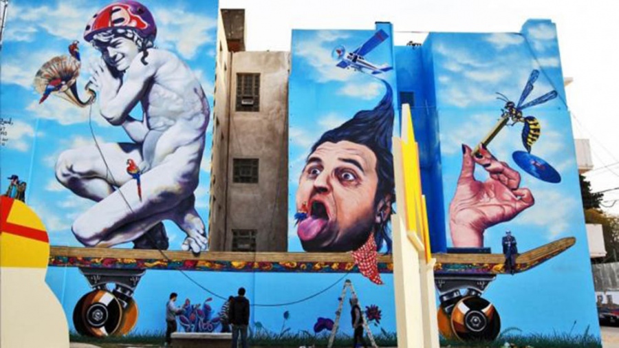 Autor de más de 300 obras callejeras, Ron (40) es considerado uno de los diez mejores muralistas del mundo y esa obra que realizó en Villa Urquiza, en 2013, tiene 400 metros cuadrados y representa un chico en skate con un fonógrafo, durante muchos años fue el mural más grande de toda la Ciudad de Buenos Aires.