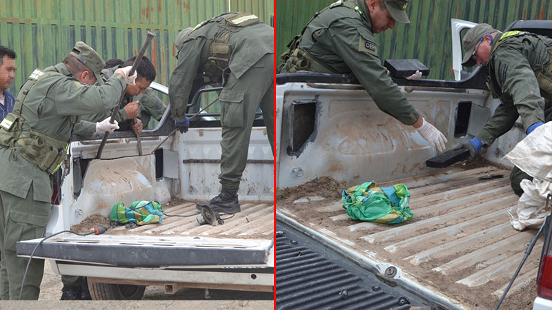 Al momento de la inspección, ante testigos, “el can detector de narcóticos «Canela» alertó a los funcionarios de la posible presencia de estupefaciente en el sector de la caja del rodado. Ante el indicio de estar posiblemente frente a un hecho ilícito, los gendarmes utilizaron el escáner portátil y herramientas, que les permitieron extraer los paneles laterales y detectar un doble fondo que contenía 48 paquetes rectangulares”, informó Gendarmería Nacional.