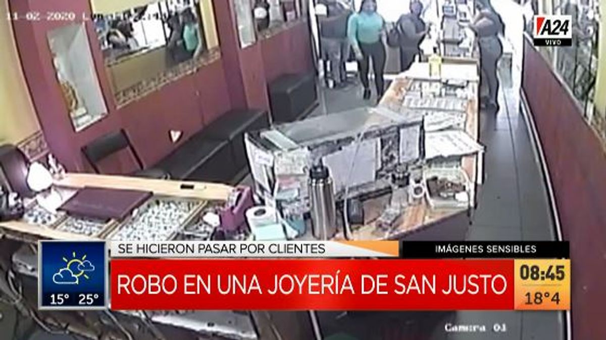 Dos ladrones armados asaltaron en tres minutos una joyería del centro de la localidad bonaerense de San Justo, en el partido de La Matanza, donde amenazaron a tres empleadas y una clienta y se llevaron joyas y al menos un millón de pesos, informaron hoy fuentes policiales y el propietario del comercio.