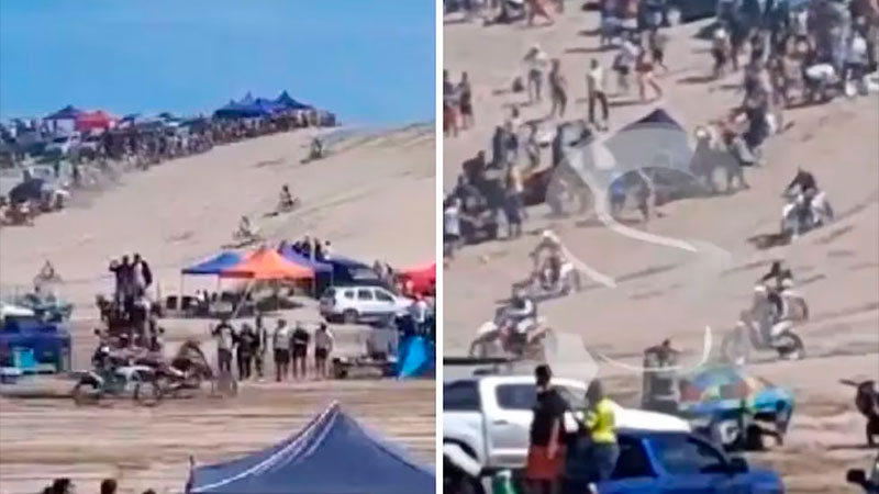 Una competencia de enduro realizado en Villa Gesell estuvo cerca de convertirse en tragedia, luego de que un competidor saltara un médano con su moto y cayera sobre los espectadores.