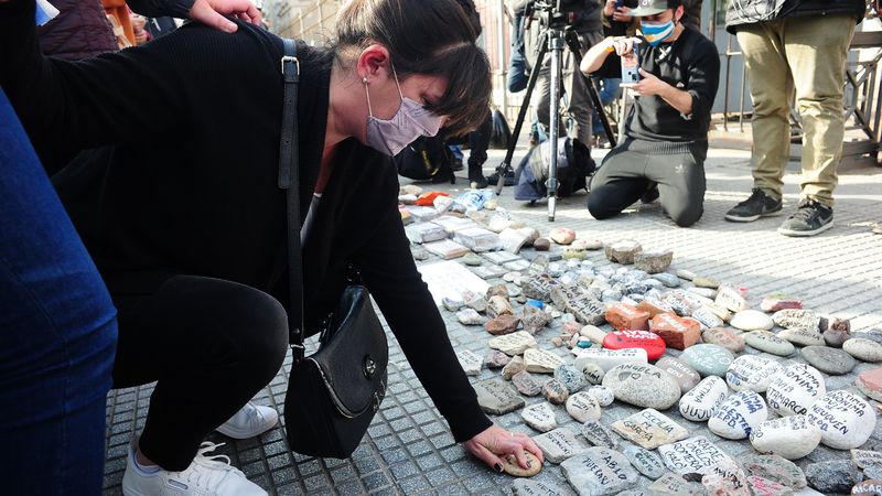 Un homenaje a las víctimas mortales que dejó la pandemia de coronavirus se llevó a cabo este lunes en la Plaza de Mayo y frente a la Residencia oficial de Olivos, donde los asistentes dejaron piedras grabadas con los nombres de muchos de los fallecidos.
