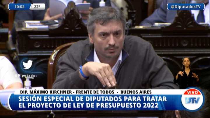 El jefe de la bancada del Frente de Todos, Máximo Kirchner, consideró hoy que a la oposición «le pegó muy mal haber ganado la elección de medio término», consideró que desde Juntos por el Cambio (JxC) «juegan a ver quién es el más duro» y cuestionó el «comportamiento patoteril» de la coalición opositora durante la sesión que rechazó hoy el proyecto de Presupuesto 2022.