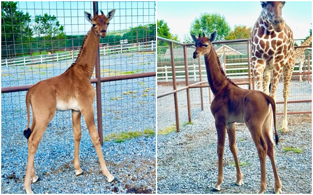 Esta maravilla que ya mide más de un metro de altura, nació sin manchas el 31 de julio en Brights Zoo en Limestone, Estados Unidos y se convirtió en la única en el mundo por haber nacido sin las manchas características.