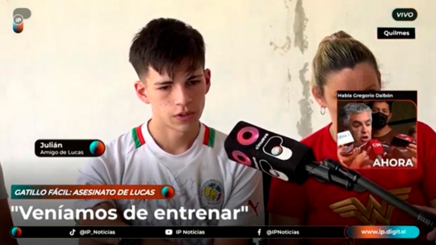 «Nos trataron mal, nos pusieron las esposas, nos tiraron al piso, nos preguntaron de dónde éramos, nos dijeron que éramos unos villeros y que nos tenían que dar un tiro en la cabeza a cada uno», aseguró al canal IP Julián, amigo de la víctima, sobre el momento en que fueron detenidos tras el homicidio de Lucas.