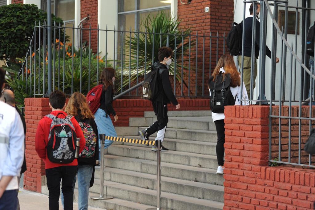 Integrantes del colegio porteño Liceo N° 9 Santiago Derqui se movilizaron hoy y exigieron al Gobierno de la Ciudad de Buenos Aires una presencialidad cuidada en las aulas mediante la vuelta del sistema de burbujas y protocolos acordes a las condiciones edilicias de cada institución.