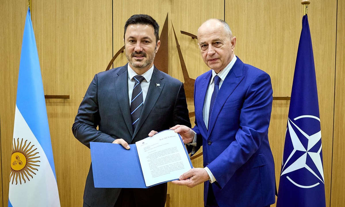 El ministro Petri le entregó a Mircea Geoana, secretario general adjunto de la OTAN, la solicitud argentina para ser declarado «socio global» de la alianza hemisférica