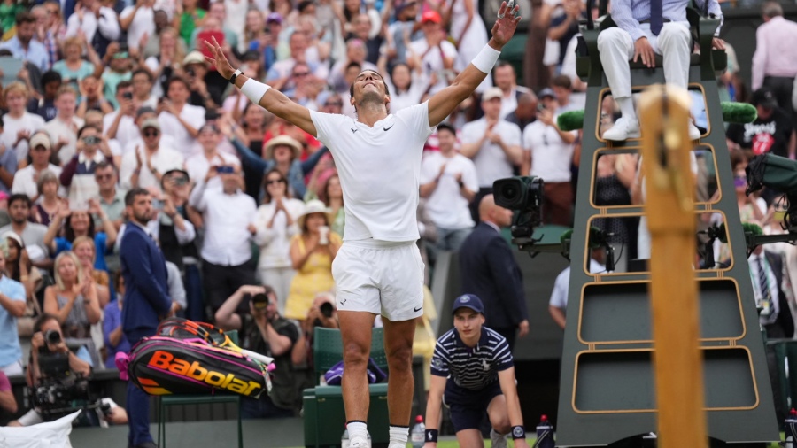 El español Rafael Nadal, ubicado en cuarto lugar del ranking mundial del ATP y segundo favorito al título, avanzó este miércoles a las semifinales del Abierto de tenis Wimbledon, tercer Grand Slam del año, tras derrotar al estadounidense Taylor Fritz (14) al cabo de cinco sets por 3-6, 7-5, 3-6, 7-5 y 7-6 (10-4 en el tie break).
