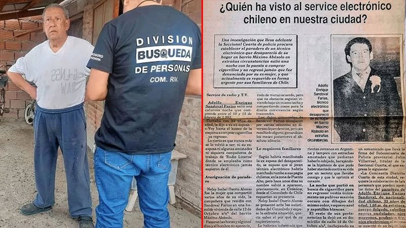 El insólito episodio ocurrió en las últimas horas cuando la Policía de Chubut fue hasta el domicilio de Adolfo Enrique Sandoval Farías, de nacionalidad chilena, luego de que la Jefa de la División de Búsqueda de Personas obtuviera un dato importante sobre su paradero 30 años después de su desaparición.