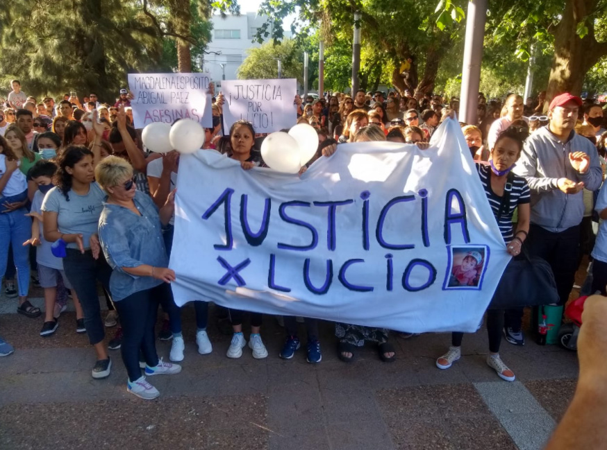 En Santa Rosa, un grupo de personas se manifestó en la explanada de la Ciudad Judicial donde reclamó justicia por el niño, exigió celeridad en la investigación del hecho y que se determinen si existieron responsabilidades de funcionarios que pudieron haber evitado la muerte de Lucio.