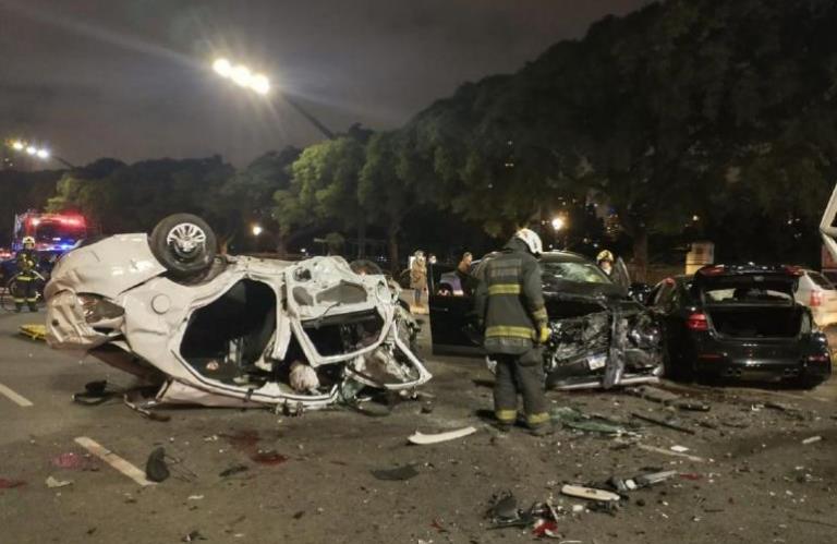 El segundo vehículo, un automóvil Ford K, quedó en posición invertida, con tres hombres y dos mujeres, todos adultos, atrapados en su interior, que fueron liberados por los bomberos de la Ciudad mediante el empleo de herramientas hidráulicas.