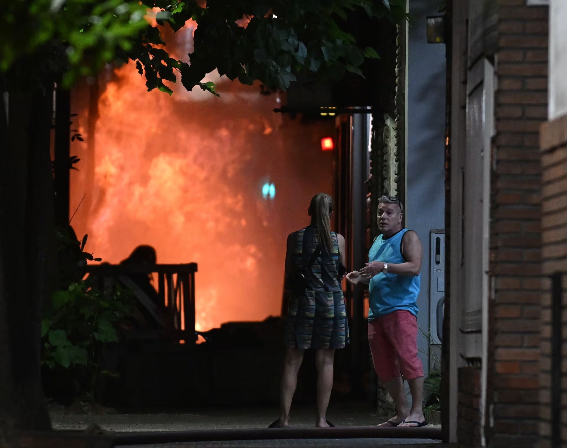 Además, dos locales comerciales sufrieron importantes daños materiales. Uno de ellos, un garaje, registró desprendimientos de mampostería, rotura de vidrios y deformaciones en la carpintería metálica, producto de la onda expansiva y el calor.