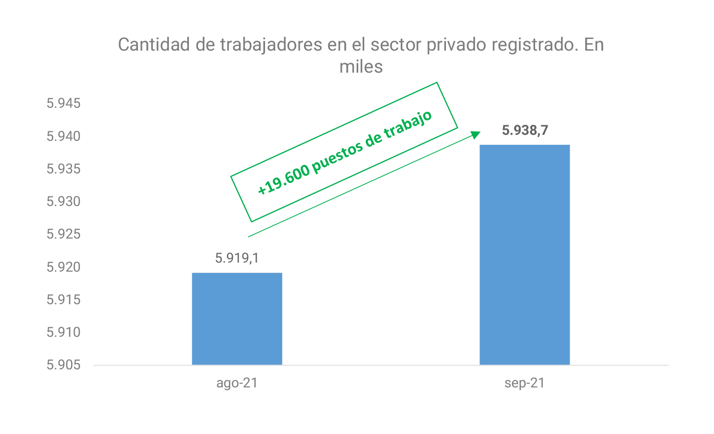 El sector privado sumó 19.600 nuevos puestos de trabajo en septiembre, con lo cual el empleo registrado fuera del sector público ya acumula 11 meses de crecimiento, destacó un informe del Centro de Economía Política Argentina (CEPA).