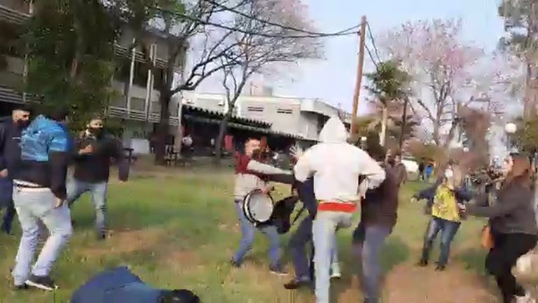 En el mismo momento que esto ocurría, en el campus de la UNdF se desataba una batalla campal entre ambos sectores. En las imágenes que se difundieron en redes sociales y a través de algunos los medios locales, se puede ver la violencia extrema con la que los grupos se enfrentaron.