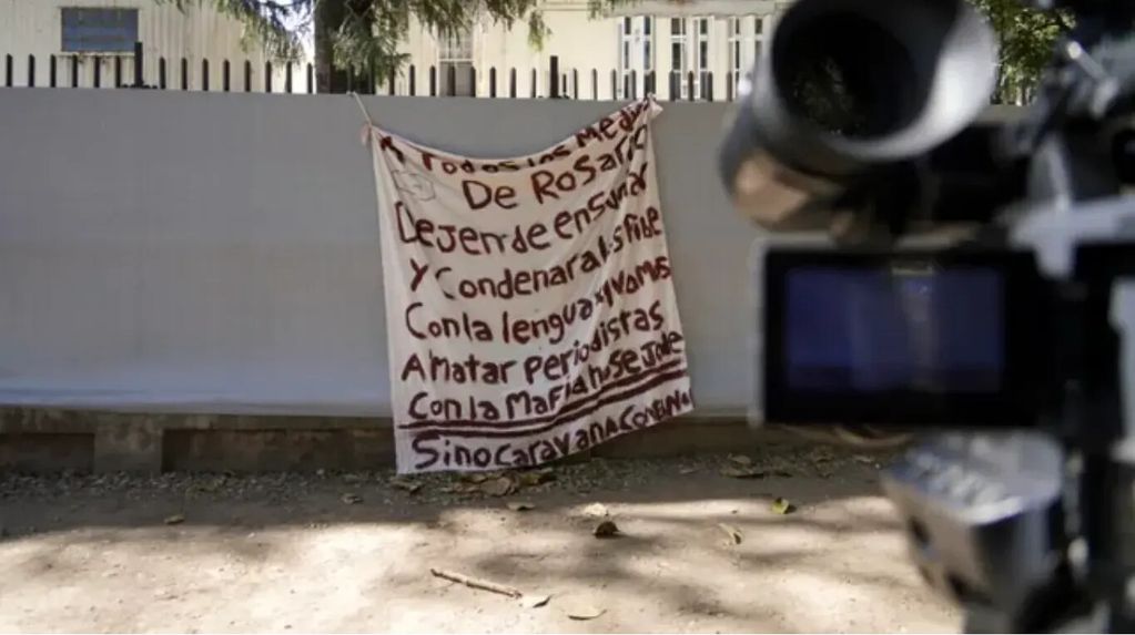 El mensaje escrito con pintura roja concluye: “Si no de caravana con el Noba”. La tela fue colgada sobre un lateral del enrejado que rodea el sector del jardín del ex Canal 5, ubicado a dos cuadras del Monumento de la Bandera. Aunque existieron intimidaciones a periodistas, es la primera vez que se conoce una amenaza a los medios de comunicación en su conjunto en la ciudad cercada por el narcotráfico. Antes, los blancos de los ataques habían sido edificios judiciales.