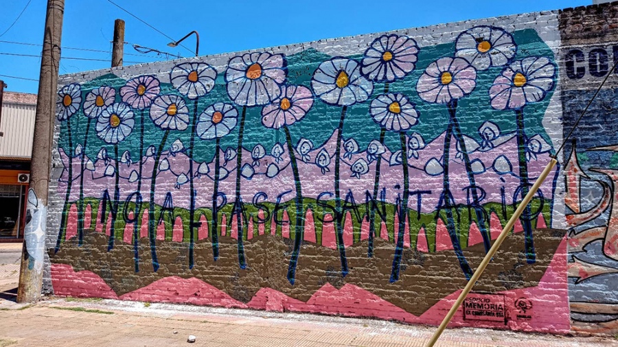 El mural fue vandalizado en la madrugada del martes por desconocidos que realizaron pintadas en rechazo al «pase sanitario» que implementará el Gobierno bonaerense desde el 21 de diciembre próximo para eventos masivos y trámites ante organismos públicos con el objetivo de incentivar la vacunación.