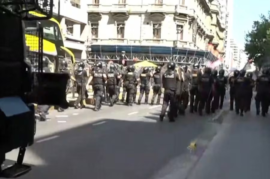 El avance policial se extendió desde la zona de Alem hasta avenida Córdoba. Testigos señalaron que efectivos persiguieron a manifestantes que intentaban desconcentrar para evitar los camiones hidrantes y motos que ingresaron al área.